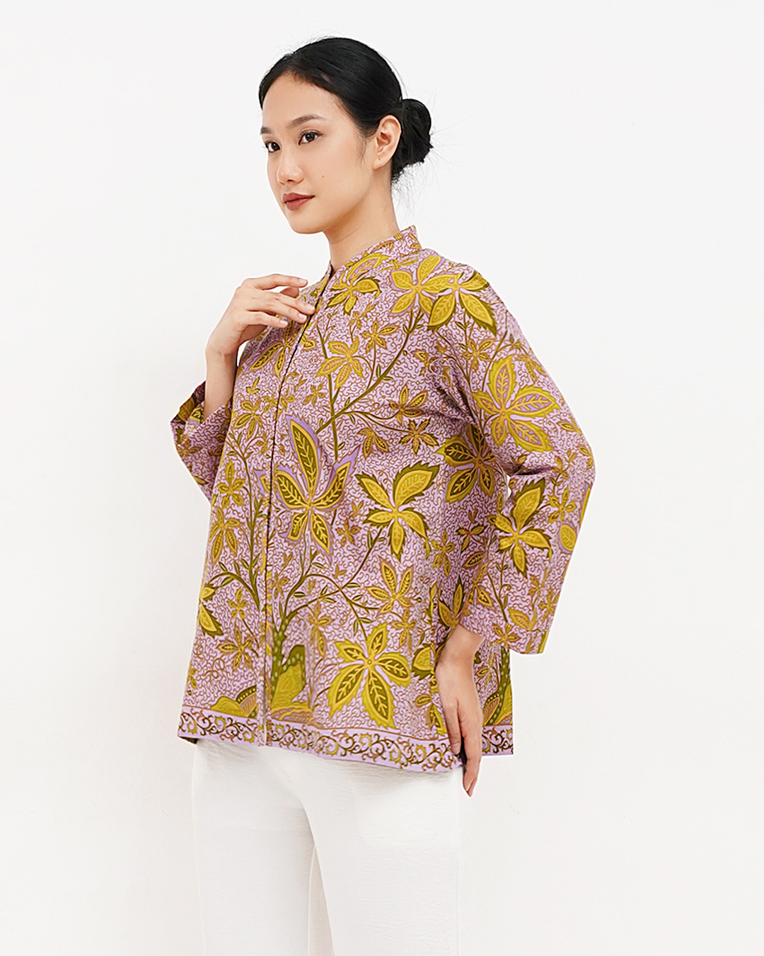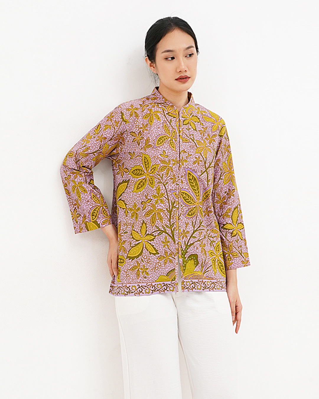 Blouse Lengan Panjang Sebaran Daun – Ungu